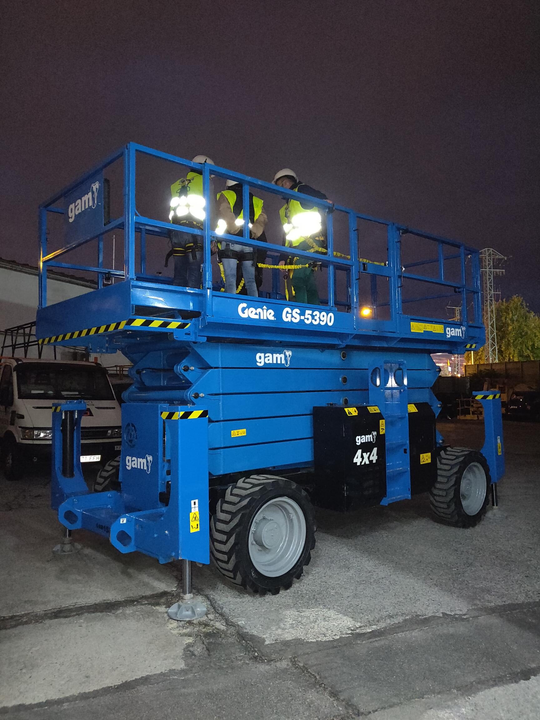 La maquinaria empleada en las jornadas formativas fue una plataforma elevadora con brazo articulado y una plataforma elevadora de tijera. Este tipo de maquinaria nos permite llegar a alturas de hasta 18m. El manejo de la maquinaria por parte de cada trabajador de Greening-e que participó en la formación afianzó aún más todos los conocimientos dados de modo teórico.